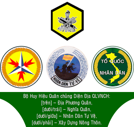 các Tiểu Đoàn Địa Phương Quân, các Trung Đội Nghĩa Quân; và lực lượng Bán Quân Sự gồm các Đoàn Nhân Dân Tự Vệ và Xây Dựng Nông