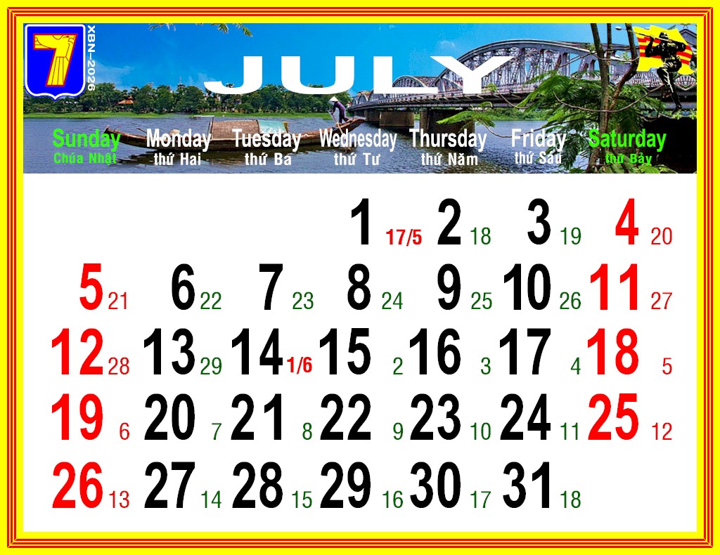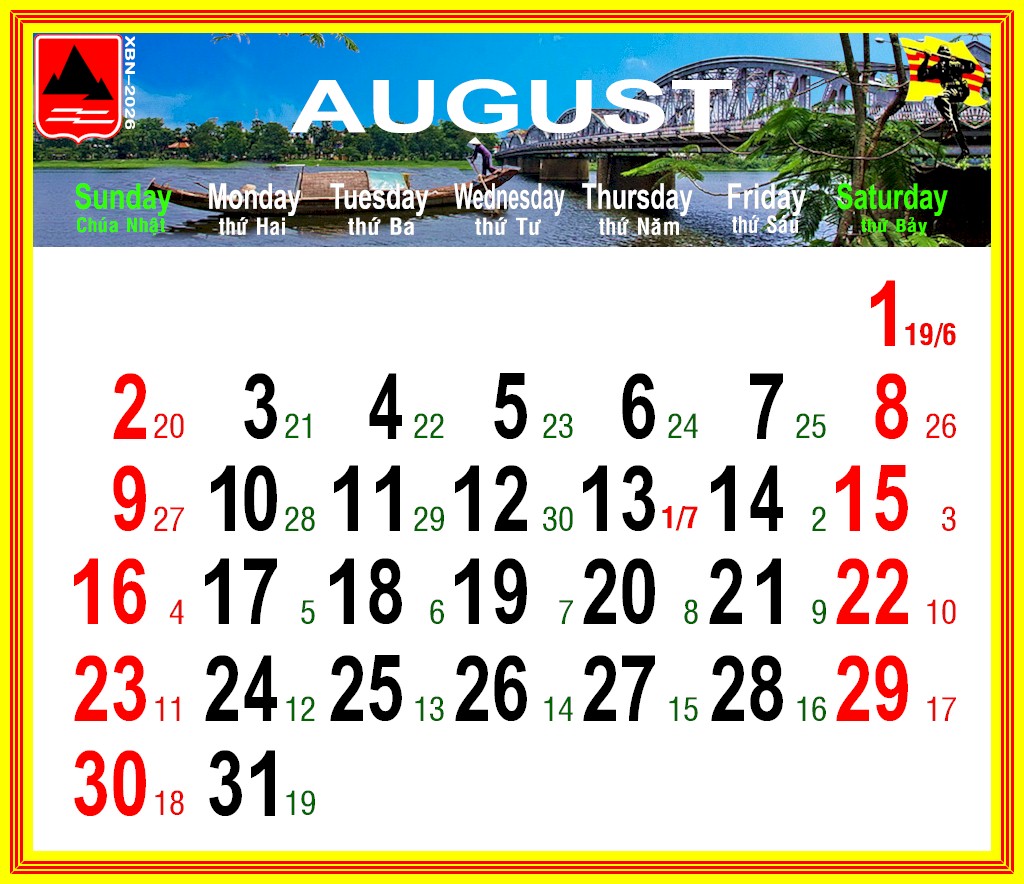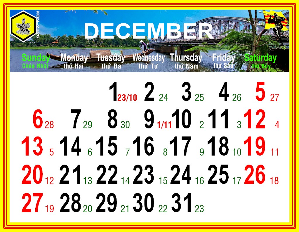Lịch VDQLVNCH xuân BÍNH NGỌ – 2026