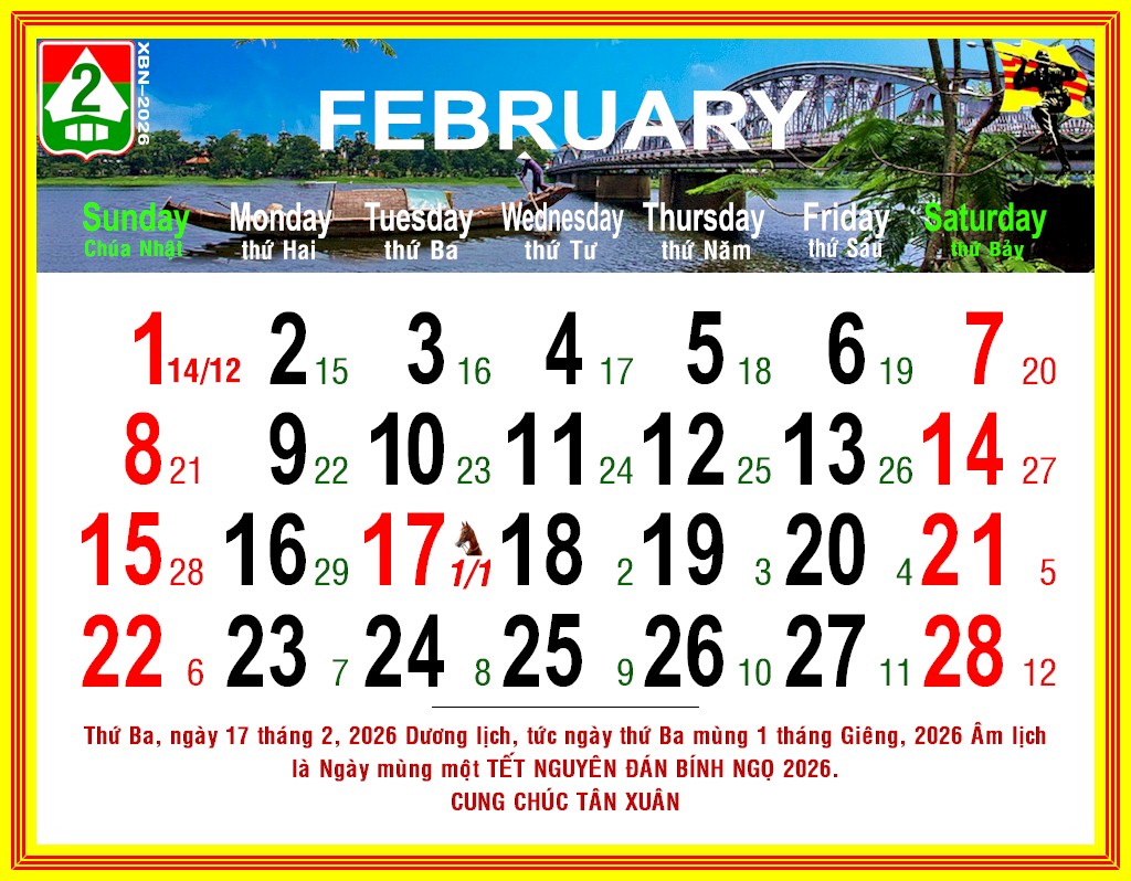 Lịch VDQLVNCH xuân BÍNH NGỌ – 2026