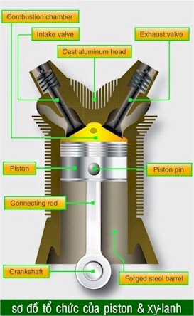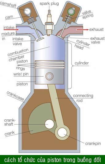sự chuyển động của piston trong động cơ. Khi hỗn hợp nhiên